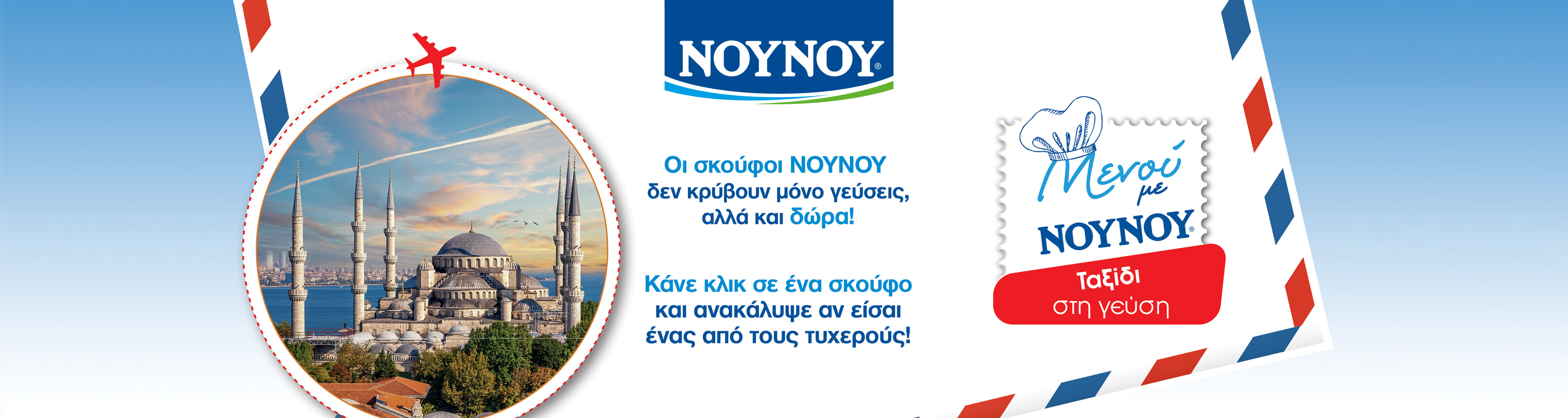 Ανέβασε την απόδειξη αγοράς με τουλάχιστον 1 προϊόν ΝΟΥΝΟΥ από τα καταστήματα My Market, δες στη στιγμή αν κέρδισες κάποιο από τα πλούσια δώρα, ενώ παράλληλα συμμετέχεις στην κλήρωση για το ταξίδι στην Κωνσταντινούπολη!
